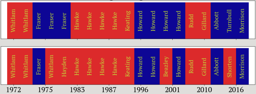 Fifty years of Australian elections in an alternative electoral reality